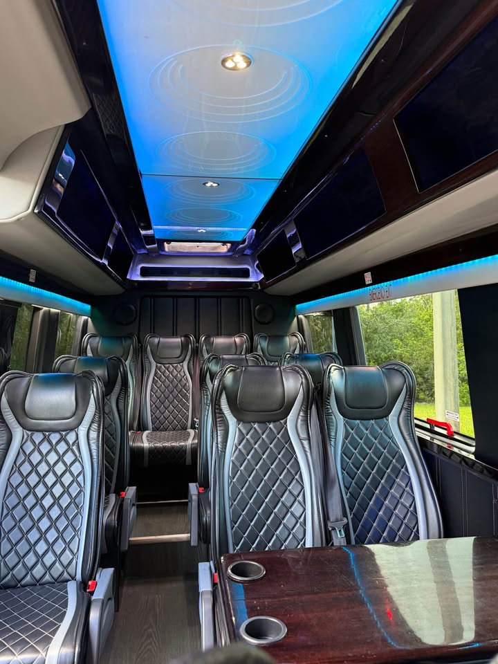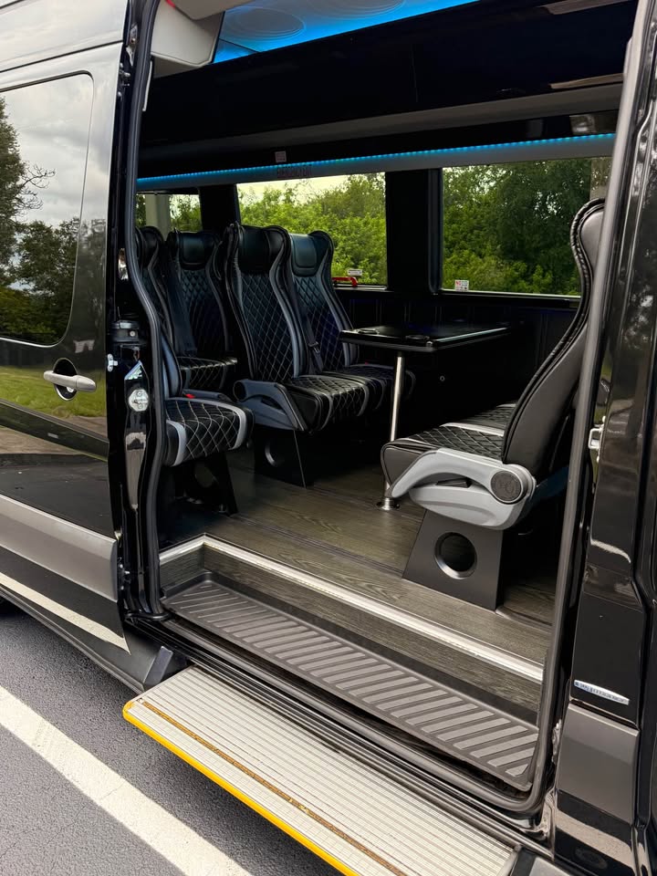 Our spacious Mercedes Sprinter van is designed to accommodate larger groups while maintaining a high standard of comfort. With seating for up to 14 passengers and generous cargo space, this vehicle is perfect for group outings, airport transfers, and events. The Sprinter van offers a smooth, ensuring your group arrives together and on time. Enjoy the roomy interior and professional service that make every trip a pleasant experience.